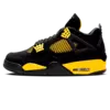 A edição de 2023 do Air Jordan 4 Retro 'Thunder' Preto / Amarelo traz de volta a tão desejada combinação de cores lançada originalmente em 2006 (e relançada anteriormente em 2012). Este Air Jordan 4 preto com detalhes em amarelo tem construção em nobuck preto de alta qualidade, que cria um contraste incrível com os detalhes amarelos nas partes plásticas (ilhós dos cadarços), no painel lateral, parte inferior da língua e entressola. A renomada marca Jumpman é destacada na etiqueta da língua "Flight", no puxador do calcanhar e na palmilha.